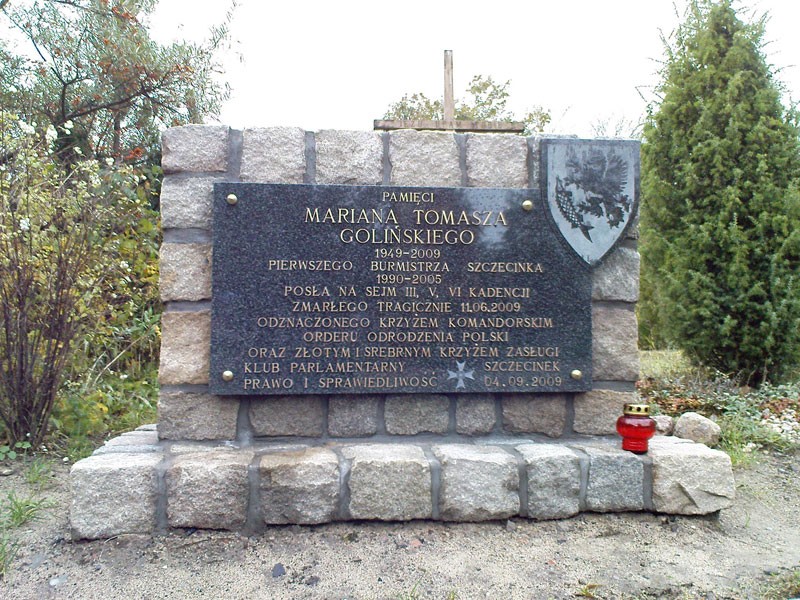 Wczesnym ranem w Boże Ciało dotarła do nas smutna wiadomość. Około godz. drugiej nad ranem koło Sochaczewa doszło do tragicznego wypadku drogowego, w wyniku którego śmierć na drodze poniósł poseł Marian T. Goliński. 13 czerwca, w sobotę mieszkańcy Szczecinka w strugach deszczu żegnali swego pierwszego burmistrza. Wcześniej w kościele pw. św. Rozalii odbyła się uroczysta msza św. U stóp ołtarza nisko, tuż nad posadzką w otoczeniu kwiatów stanęła trumna. Tragiczna śmierć M.T. Golińskiego zaskoczyła wszystkich. Z pewnością był dla miasta znaczącą osobowością. W jego ostatniej drodze towarzyszyli mu tysiące szczecinecczan.