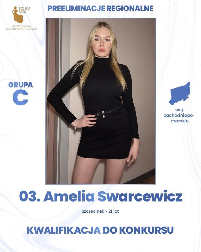 Poznajemy na bieżąco wyniki preeliminacji regionalnych konkursu Polska Miss Województwa Zachodniopomorskiego 2026. Z grupy C awans do półfinału uzyskało osiem dziewczyn, w tym pochodząca ze Szczecinka 21-letnia Amelia Swarcewicz, absolwentka ZS nr 1 im. Komisji Edukacji Narodowej, studiująca obecnie w Szczecinie. Półfinał regionalny odbędzie się w studiu fotograficznym Two Shots Studio w Szczecinie 7 marca. Kandydatki porozmawiają z jury, zapozują do zdjęć oraz nagrają krótkie wideo.