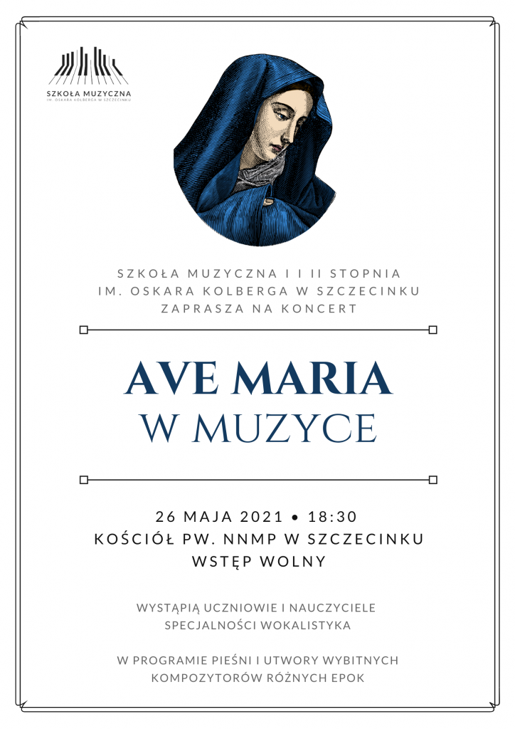 Niezapomniany prezent dla wszystkich mam (i nie tylko) przygotowała Szkoła Muzyczna I i II st. im. O. Kolberga w Szczecinku. Uczniowie i nauczyciele specjalności wokalistyka zapraszają na koncert muzyki sakralnej, który odbędzie się w szczecineckim kościele Mariackim. W programie wiele pięknych pieśni “Ave Maria” kompozytorów różnych epok.