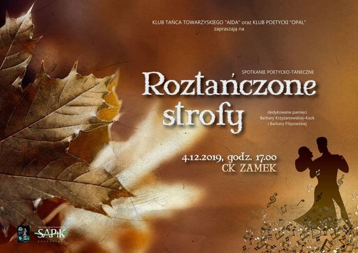 Spotkanie poetycko-taneczne o wdzięcznej nazwie “Roztańczone strofy” odbędzie się w środę, 4.12 w CK Zamek o godz. 17.00. Organizatorzy serdecznie zapraszają!