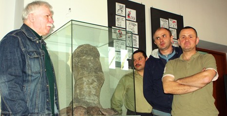 Kilka dni temu Belbuka wyciągnięto z ciemnej wieży na światło dzienne i przetransportowano do muzeum. Dzisiaj ok. godz. 8 pracownicy firmy Kaspol nie bez trudności Belbuka (170 kg) wstawili do przeszklonej gabloty stojącej w holu muzeum. Operacja ta wymagała ustawienia roboczego rusztu z drewnianych palet. Po godzinie wytężonej pracy, kamienny bożek stanął – mamy nadzieję, że na długie lata - na poczesnym miejscu. (jg)