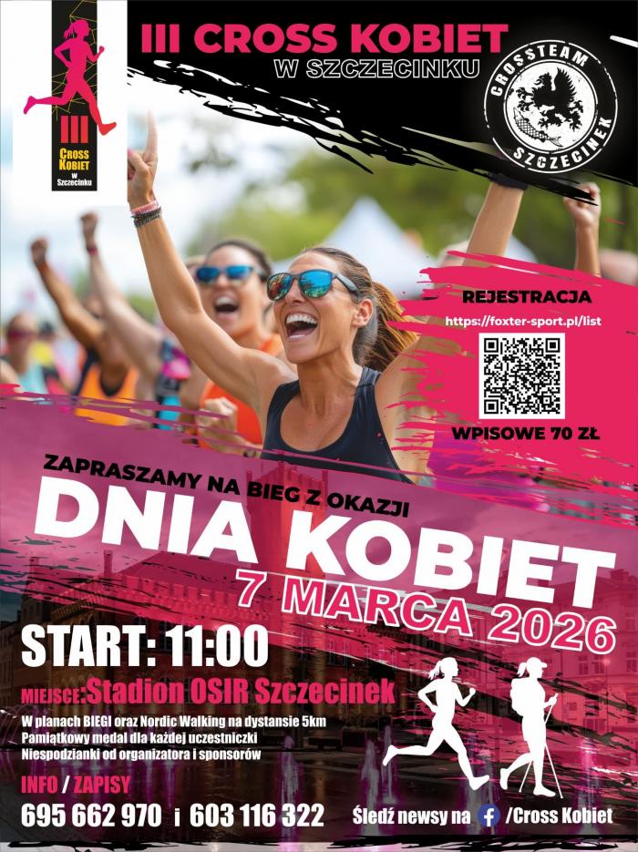 W sobotę 7 marca odbędzie się trzecia edycja imprezy pod nazwą „Cross Kobiet w Szczecinku”. Start biegu o godzinie 11:00 przy bramie Stadionu Miejskiego przy ul. Piłsudskiego. Bieg i marsz Nordic Walking organizuje Stowarzyszenie CrossTeam Szczecinek. Na mecie na panie czekają okazjonalne medale. Trasa wyniesie 5 kilometrów.