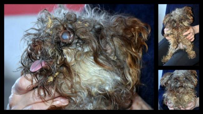 Wszystkie pieski wymagają pomocy. Najmniejszy waży zaledwie 2,3 kg i jest wizualnie w najgorszym stanie.