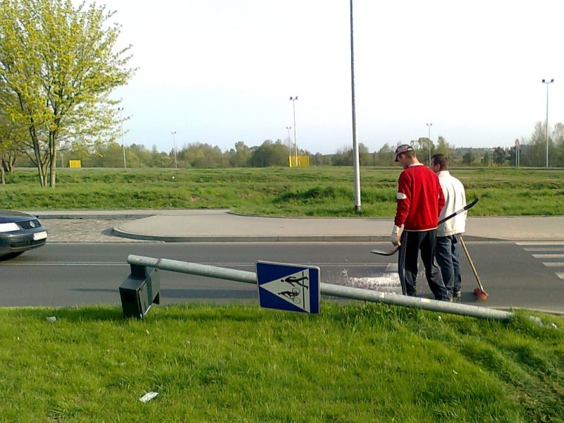 Niby nic śmiesznego, ale kierowca był wcześniej… naprowadzany przez robotnika. W pobliżu „przekładane” są właśnie osiedlowe alejki, trwają prace nad wymianą nawierzchni chodników. Lampa runęła na jezdnię, na szczęście w tym momencie nikt tamtędy nie przejeżdżał i nie przechodził. Teraz problem mają miejskie służby, ponieważ zwalony słup znajduje się pod napięciem. Oby tylko nie doszło tam do tragedii. (sw)