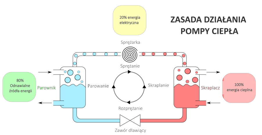 Pompa ciepła jest to urządzenie grzewcze, które nie "produkuje" energii. Do działania niepotrzebny jest też proces spalania. Tak więc nie ma spalin, popiołu, kurzu i innych efektów ubocznych. Pompy ciepła w pełni wykorzystują energię zgromadzoną w środowisku naturalnym. Przykładowo powietrzna pompa ciepła energię cieplną przetwarza z powietrza.