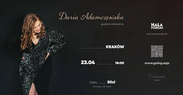 23 kwietnia o godz. 18:00 w Hali Forum w Krakowie odbędzie się koncert “Godzina Miłowania” w wykonaniu Darii i jej zespołu. Usłyszymy tam autorskie utwory, ale także piosenki legendarnych artystów - Andrzeja Zauchy, Marka Grechuty, Piotra Cugowskiego czy Beaty Kozidrak w nowych, rockowych aranżacjach.