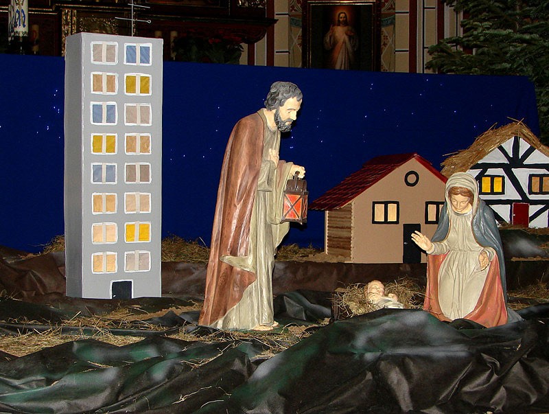 Co podczas tegorocznych Świąt Bożego Narodzenia będzie motywem przewodnim w szopce znajdującej się w największej parafii w Szczecinku? Mówi ks. Dariusz Stachula: - Jakby odczytać myśl autora, jest to motyw obecności Boga pośród współczesnej cywilizacji. Z prawej strony żłóbka stoją domy, powiedzmy, wiejskie, nawet jeden ze strzechą. Po drugiej stronie stoją bloki mieszkalne. Jest to odniesienie do tego, że Dobra Nowina jest głoszona urbi et orbi – miastu i światu. Jak to tłumaczyć. Po prostu, to cały świat, miasta i wioski, każdy człowiek, niezależnie od tego, gdzie w danym miejscu się znajduje, wszyscy jesteśmy odbiorcami. Każdy z nas jest adresatami Dobrej Nowiny, nowiny o narodzinach Boga. (sz)