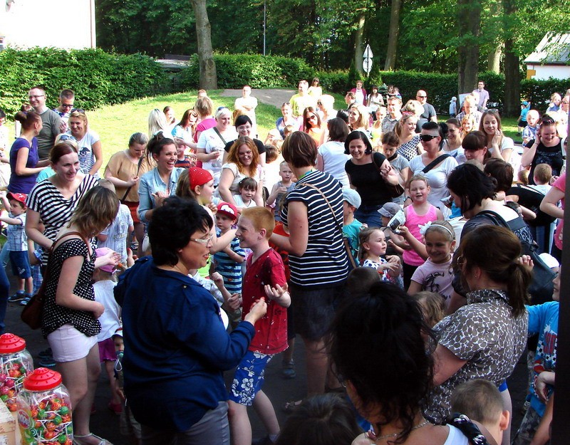 - W zabawie uczestniczy około 200 dzieci – mówi Grażyna Herchel-Szeremeta. - To nieco inna formuła Dnia Matki, Dziecka i przypadającego także w czerwcu Dnia Ojca, która ułatwia nam kontakt i integrację z rodzicami. Przy okazji propagujemy również ideę aktywnego spędzania wolnego czasu. Nasi nauczyciele zadbali o iście bajkowy klimat. Przygotowali bazy, stacje, o ciekawych nazwach, np. „Celne oko”, „Kopalnia skarbów”, „Przeciąganie liny” i wiele innych, które mają za zadanie jeszcze bardziej uatrakcyjnić dzisiejszą zabawę.