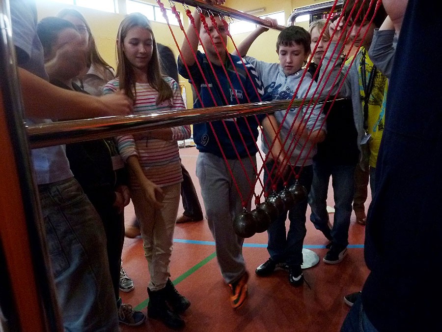 - Wystawa powstała z inicjatywy fundacji PGNiG im. Ignacego Łukasiewicza, która również finansuje tę wystawę. Składa się ona z 23 instalacji, dzięki którym dzieci, uruchamiając te instalacje, poznają zasady fizyki i techniki. Od listopada 2011 odwiedziliśmy ok. 60 szkół, gdzie w zajęciach wzięło udział ponad 14 tys. uczniów z woj. zachodniopomorskiego oraz pomorskiego - mówi Tomasz Pietruszyński z Pomysłowej Fabryki, która jest pomysłodawcą oraz realizatorem całej akcji. - My to nazywamy „Wystawą eksperymentów”. Jest to szereg instalacji, dzięki którym dzieci, młodzież, a nawet dorośli, bo eksperymentatorzy nie mają wieku, mogą poprzez dotykanie i uruchamianie poszczególnych urządzeń poznawać prawa fizyki, techniki czy matematyki. Krótko mówiąc, staramy się wytłumaczyć na pozór skomplikowane zagadnienia w bardziej przystępny sposób, właśnie poprzez proste doświadczenia. Dzięki temu np. już sześciolatek może dowiedzieć się, jak szybko porusza się dźwięk w powietrzu.