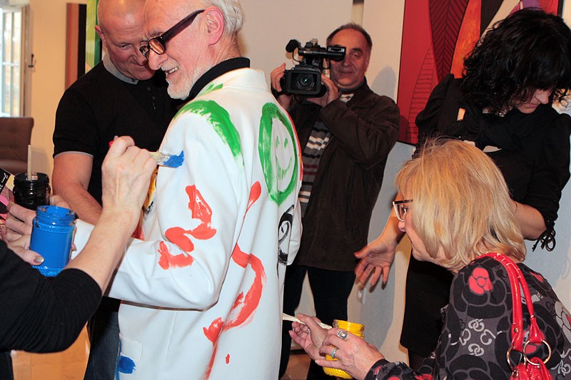 Artysta zaprosił uczestników wernisażu do performance. Każdy mógł pobrać pędzlem jeden z przygotowanych czterech kolorów i zaznaczyć swój kolorowy ślad na białej marynarce J. Szewczyka. Jak to określił artysta – każdy ma swoje miejsce. – To jest fragment, który wchodzi w dialog ze mną, jako osobowością. To już jest zaanektowana ta część mojej własności.