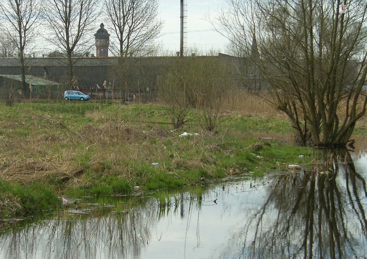 Z 1877 roku pochodzi kolejna mapa sztabowa. Tereny zalewowe obejmują wprawdzie okolice dz. ul. Mickiewicza, ale za to przy północnym brzegu pojawiły się tereny parkowe. Mocno zmniejszył się także zasięg trzęsawiska i terenów podmokłych od strony Wielimia. Łąki pojawiły się od wysokości mostu na Niezdobnej w miejscu dzisiejszej ul. Szafera.