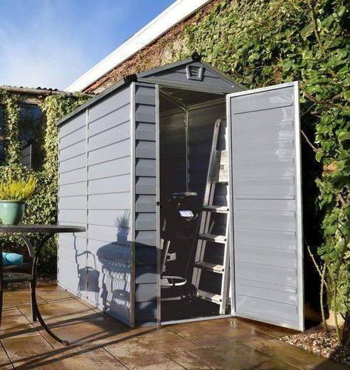 Przykład plastikowego domku na narzędzie, który może posłużyć za schowek na nasz rower