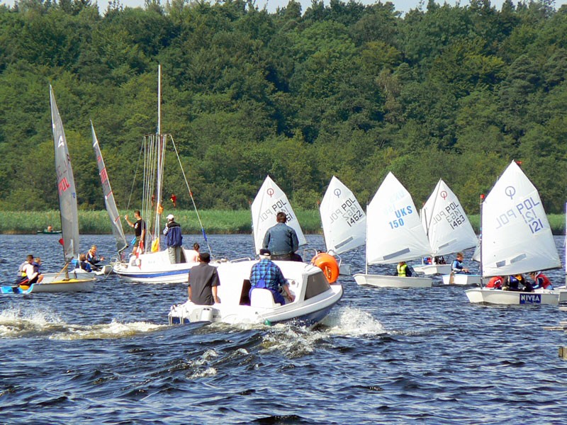 Kiedy odbyły się ostatnie regaty? Pytanie jest równie niestosowne, jak bekanie w towarzystwie po sutym obiedzie. Dla przypomnienia, dawno, dawno temu regaty odbywały się co... tydzień. To nie pomyłka. Większe, mniejsze z udziałem gości lub bez , ale zawsze w sezonie takowe były. Pływanie po trójkącie wyznaczonym przez bojki lub ostatnie okrążenie po śledziu. Znaczną część jeziora dzisiaj opasują „druty” toru narciarskiego i tak dość mikra powierzchnia jeziora została znacznie uszczuplona. W każdym razie stało się coś zadziwiającego. Jest więc sprawa dla entuzjastów tego sportu, ale nie tych zza biurek. Oby tylko zechcieli i mogli coś w tej materii zrobić. Inaczej - precz złudzenia - pora na drukowanie nekrologu.