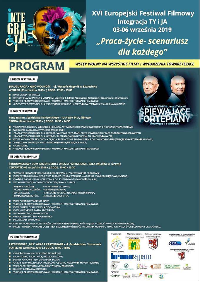 Program festiwalu jest bardzo bogaty i obejmuje cztery dni, od 3-6 września. Uroczysta inauguracja imprezy będzie mieć miejsce o godz. 17.00 w kinie Wolność. Odbędzie się wówczas specjalne show: Majewski&Tylman “Śpiewające Fortepiany”. Oprócz tego będzie można zobaczyć najnowsze konkursowe projekcje filmowe, na uczestników wydarzenia czekać też będzie poczęstunek.