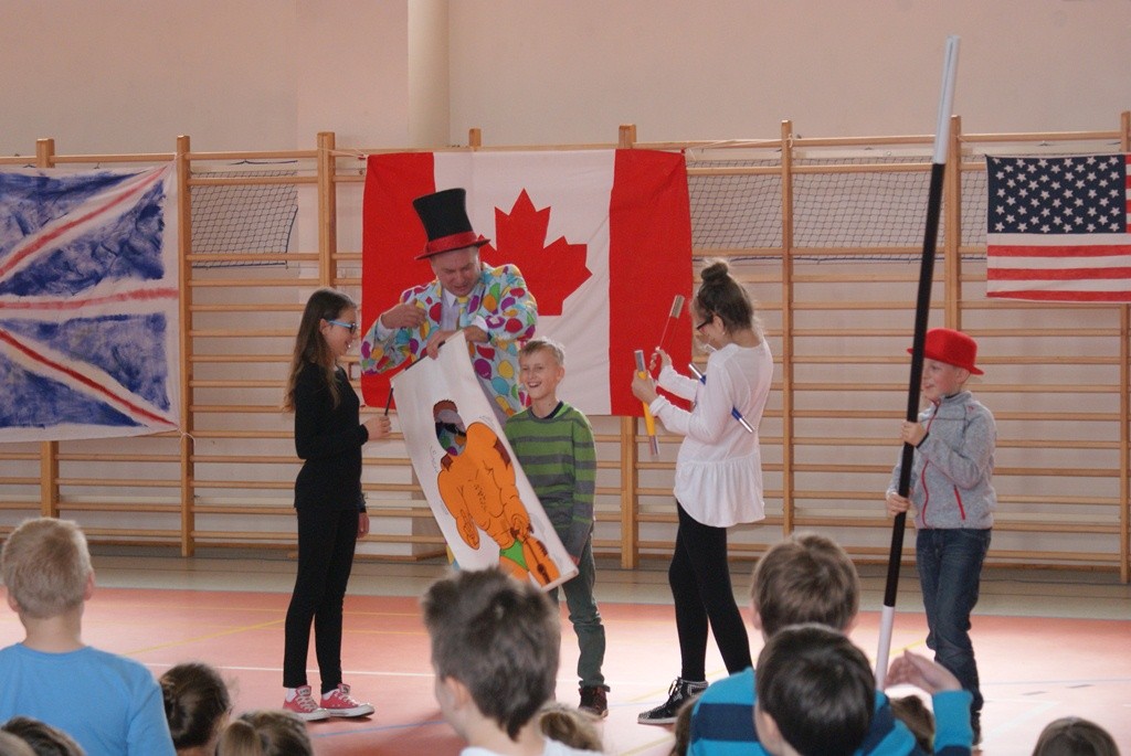 W czasie, gdy w kinie Wolność odbywał się „Przegląd teatrów jednego aktora w języku angielskim” w sali gimnastycznej Zespołu Szkół Społecznych trwała impreza, której bohaterami byli uczniowie Społecznej Szkoły Podstawowej. Młodzi adepci sztuki magicznej brali udział w konkurencjach sportowych na wesoło, a także odpowiadali na pytania w języku angielskim. W quizie wiedzy o kulturze krajów anglojęzycznych niebywałą wiedzą popisali się: Jacek Dobiański z kl. IV, Jakub Karwacki z klasy V, a także Agata Aleksandrowicz z klasy VI.