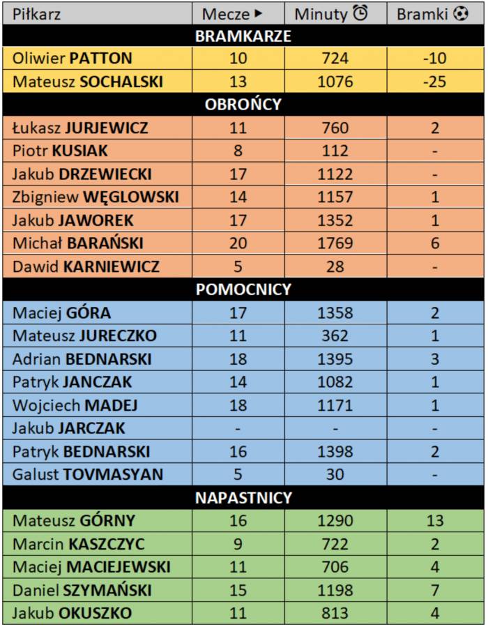 W 20 meczach MKP stracił 35 goli - 10. miejsce w lidze pod tym względem. W zaledwie trzech starciach podopieczni Zbigniewa Węglowskiego nie tracili bramek. Łączny bilans po rundzie to 10 wygranych, 3 remisy i 7 porażek (33 pkt).