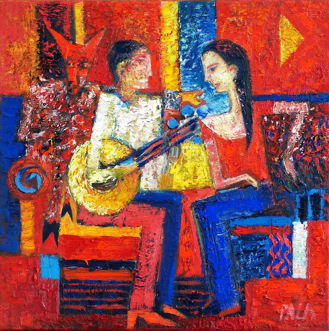 Maluje kompozycje figuralne, martwe natury, abstrakcje, a także tworzy formy przestrzenne z drewna, pleksi, metalu.