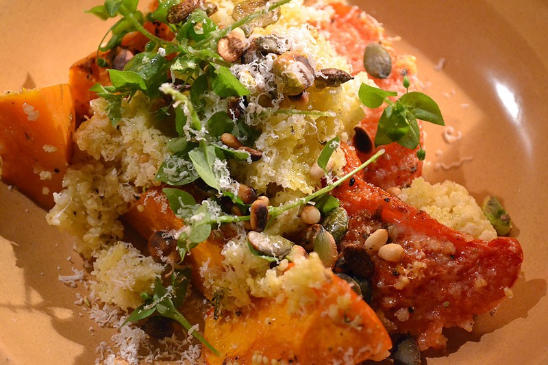 Danie, które proponuję na ten weekend to jedno z tych, które powstają w chwilach, kiedy wydaje nam się, że nie mamy nic w lodówce, wpadamy do domu głodni i zmarznięci i musimy uruchomić naszą wyobraźnię, aby coś upichcić prawie „z niczego”. W moim przypadku, po szturmie przez szafki, misy na parapecie kuchennym i lodówkę, „niczym” była właśnie resztka dynia oraz kilka poobijanych, ale jeszcze krajowych, pomidorów, kasza jaglana i kawałek parmezanu. I upichciłam coś, co z pewnością trafi do segregatora z moimi ulubionymi przepisami – pożywną, rozgrzewającą, treściwą zapiekankę.