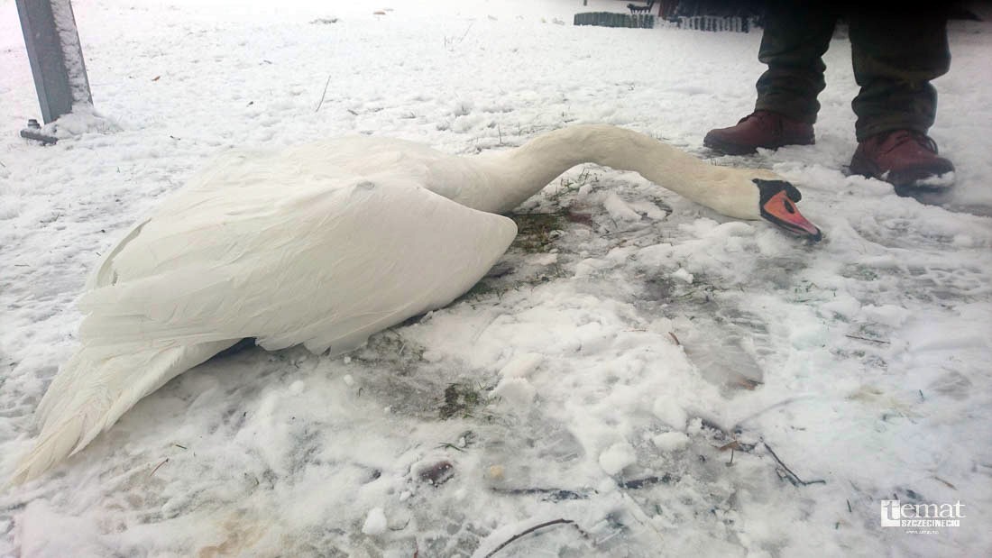 Okazuje się jednak, że… ptak żyje! Zaalarmowani naszym artykułem (wersja poprzednia mówiła o śmierci) na miejscu zjawili się strażnicy miejscy, którzy postanowili zawieźć łabędzia do Lecznicy dla Zwierząt. Na miejscu okazało się, że daje oznaki życia. Zanim zostanie dokładnie zdiagnozowany, teraz musi się trochę ogrzać.