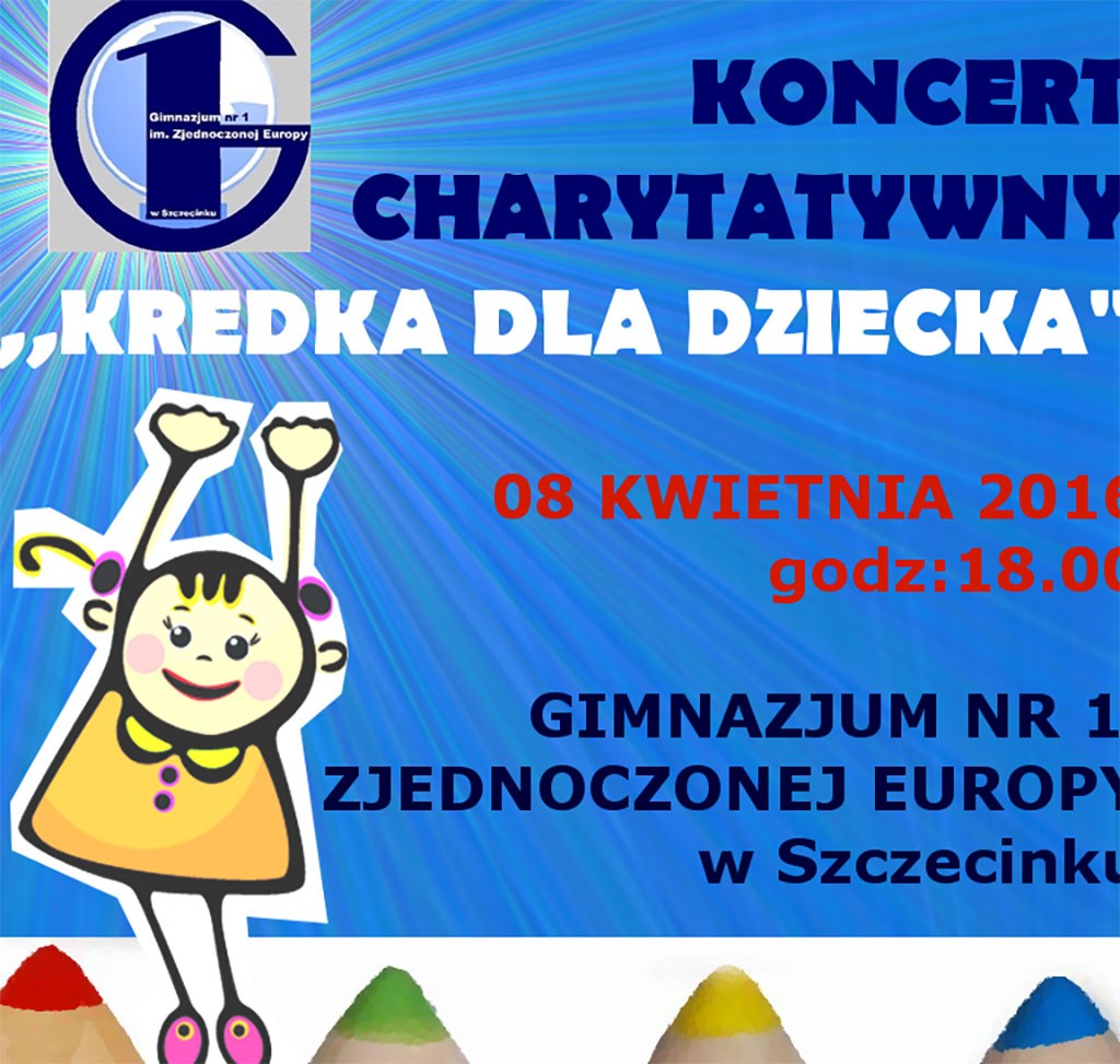 8 kwietnia opiekunki Parlamentu Uczniowskiego Gimnazjum Nr 1 im. Zjednoczonej Europy w Szczecinku, wraz z grupą młodzieży szkolnej organizują koncert charytatywny pod hasłem "Kredka dla dziecka" - informuje Anna Gościńska. - Koncert odbędzie się na terenie szkoły w godz. 18.00 - 19.30, wraz z dyskoteką międzyszkolną w godz. 19.45 - 21.00. Koncert ma na celu zebranie artykułów papierniczych (kredki, ołówki, mazaki, farbki, bloki rysunkowe itp.), które zostaną przekazane dzieciom chorym i niepełnosprawnym z Kliniki Onkologii i Hematologii Akademii Medycznej w Gdańsku oraz na Oddział Dziecięcy Szpitala Powiatowego w Szczecinku, a także innym placówkom oświatowym, zajmującym się uczeniem i wychowaniem dzieci na terenie naszego miasta.