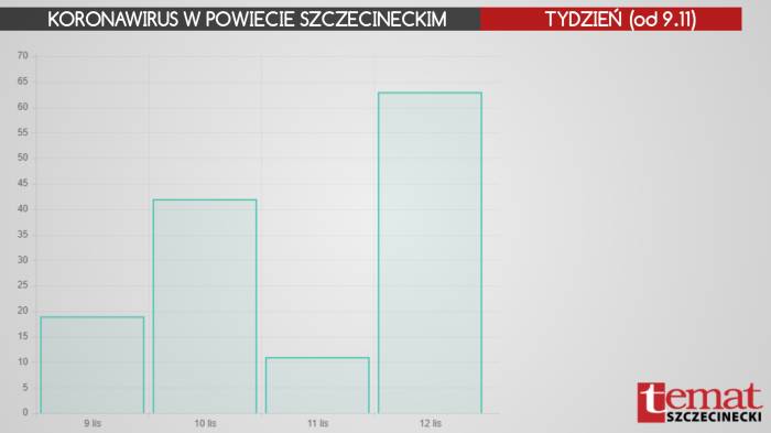 Ostatnia doba to 768 nowych przypadków koronawirusa w województwie zachodniopomorskim. W samym powiecie szczecineckim pozytywne wyniki testów na obecność COVID-19 odebrały 63 osoby: 4 dzieci, 6 młodych kobiet, 18 kobiet w średnim wieku, 11 starszych kobiet, 4 młodych mężczyzn, 15 mężczyzn w średnim wieku i 5 starszych mężczyzn.