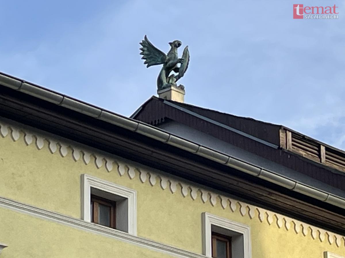 Dziwnym zbiegiem okoliczności, mimo że od zakończenia prac budowlanych minęło już parę ładnych lat, do dzisiaj właściciel nie otrzymał pozwolenia na użytkowanie narożnego budynku przy ul. Zielonej. Dom zwraca uwagę swoją… eklektyczną architekturą z przewagą elementów w stylu barokowo – rokokowym, którego wystrój przypadł do gustu właścicielowi, ale nie konserwatorowi zabytków. Kamienica, oprócz narożnego wykuszu podtrzymywanego przez dwóch muskularnych, lecz mocno zdeformowanych osiłków ze styropianowym wnętrzem, słynie także z umieszczonego na kalenicy dachu metalowej rzeźby - stylizowanego gryfa z rybą. Rzeźba nawiązuje do herbu miasta, której autorem jest nieżyjący już artysta rzeźbiarz Wiesław Adamski.