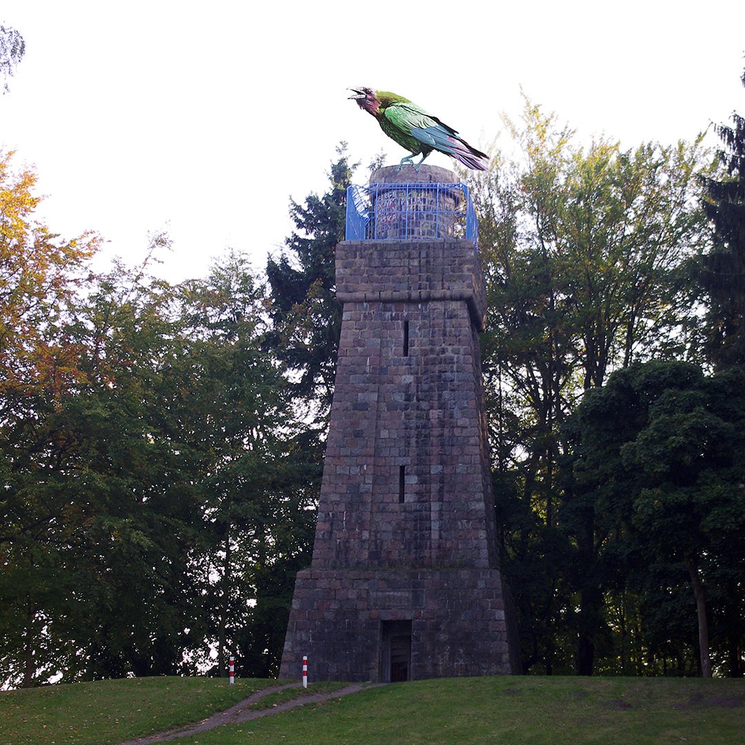 - Wydaje mi się, że taki bismarckowski przytłaczający widok na „smutną” wieżę, może być rozweselony – mówił w styczniu 2016 o zamyśle wykonania i instalacji kruka na wieży Bismarcka burmistrz Jerzy Hardie-Douglas. - Dogadaliśmy się, jeśli chodzi o wynagrodzenie autora i w tym roku „Tęczowy kruk” zostanie już tam zainstalowany. Ptak będzie miał ok. 2,5 na 4 m.