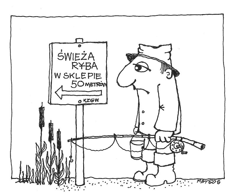 Ja osobiście do protestujących gotów jestem dołączyć, a nawet swego szwagra Mietka do tegoż namawiałem. Tyle, że on mówi tak: wiśta wio łatwo powiedzieć, a zakazu szybko uchylić się przecie nie da. Jedni do drugich będą słać pisma, odpowiadać na nie w terminach ustawowo przewidzianych, a czas biegł będzie na znaki, numery urzędowe, podpisy, pieczęcie i insze biuralityczne fizdrygały nie zważając. Turyści nie mogąc łowić, będą wyjeżdżać, a nowi nie przybędą. Koniec końców interes szlag trafi. I on, znaczy się szwagier pomysła ma, ratunkowego jak najbardziej. Wszak i jednako wystarczy wędkarzom, li i turystom wskazać zajęcia alternatywne. Zamiast na ryby, mogą iść przecie na raki, to też połów jest i to jak najbardziej zresztą. Z wędków mogą se zrobić kijki do nording walking i wkoło jezior se maszerować – tak zdrówka złapią, a i piękno naszego krajobrazu podziwiać będą. A jak już koniecznie muszą z wędkom nad wodą sterczeć, to proszę bardzo, jednak gdy wprzód odetną haczyki, by mandatu sążnistego płacenia uniknąć. No chyba że chcą budżet państwa swym groszem zasilić i rybę złowić, to niech nie odcinają. Jeśli smaku na chapnięcie rybki doznają, zapraszamy do sklepów i knajpek, których właściciele dla gości - klientów o świeżutki towar się postarają. Zdaniem mego szwagra miejscowy biznes nie ucierpi, a wręcz rozkwitnąć może, turyści i wędkarze nowych wrażeń łykną, a ryby w jeziorze nieco se odetchną.