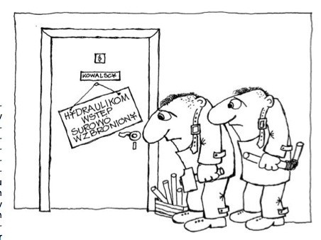 A ja, tak po prawdzie, to mej ślubnej próby powstrzymania postępu nie rozumiem. Wszak bajzel po remoncie integralną częścią takiegoż działania jest. Przecie już przed laty, znakomity bard Tadeusz Chyła śpiewał w swej balladzie: „Idzie polski robotnik mistycyzmem owiany, właśnie chciał wstawić okno i rozpieprzył pół ściany”. I choć lat upłynęło od tego czasu wiele, to fachowiec po staremu potrafi... i zniszczenie siać i forsę skasować, po co więc tak wydziwiać? A zatem ja spokojnie czekam na fachowców. Niech przyjdą, ścianę walą, kafelki tłuką i niech ślubną kasują (wszak to ona trzyma w domu kasę), i niech se odejdą. Wtenczas na tym pobojowisku w końcu wyjdzie, że moje będzie na wierzchu! Bo i dziurę załatam, i kafelki uzupełnię, i posprzątam, i po kasę łapska nie wyciągnę. A ślubnej po raz kolejny udowodnię wyższość udomowionej męskiej ręki nad fachowcem.