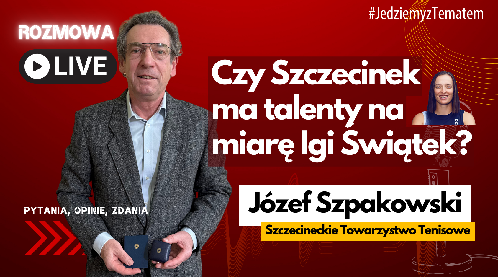 Kolejnym gościem naszego podcastu jest Józef Szpakowski - trener Szczecineckiego Towarzystwa Tenisowego. Rozmawiamy między innymi o początkach tenisa w naszym mieście, powstawaniu kortów, największych talentach i o tym, czy Iga Świątek zdetronizuje w tym sezonie Arynę Sabalenkę.