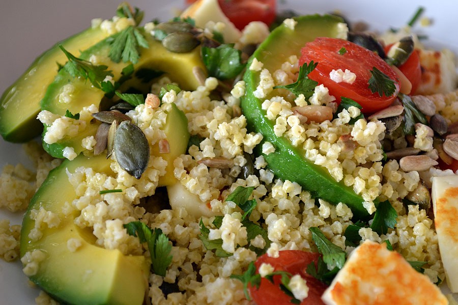 Zbożowa sałatka z awokado i serem