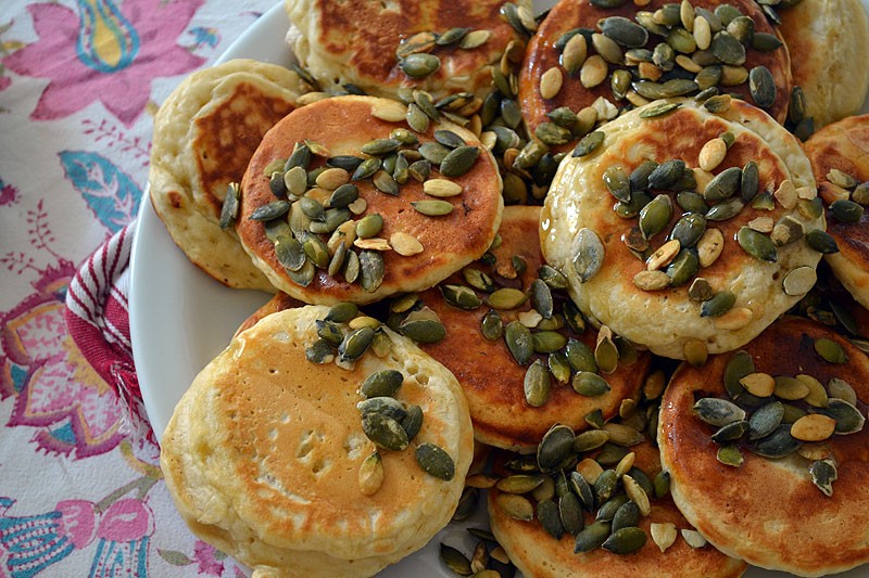 W ciepłe, letnie soboty i niedziele lubię długie, leniwe śniadania. Stół jest wówczas zastawiony słoikami z konfiturami, miodem i wiejskim masłem, a w wiklinowym koszyczku lądują świeże bułki i rogale. I zawsze jest miejsce na talerz z górą naleśników, takich w stylu amerykańskim – grubych, puchatych, niedużych.