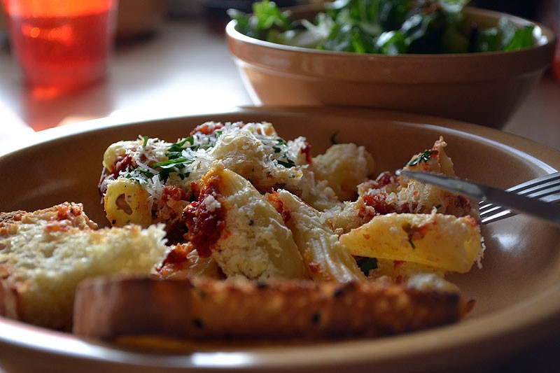 Makarony zawsze pomogą wyjść zwycięsko w przypadku niespodziewanej wizyty przyjaciół lub z sytuacji typu „co dziś na kolację?” Podczas gdy woda na kluski już się grzeje, możemy szybko przygotować sos, a następnie wszystko ze sobą połączyć, i gotowe. Aby jednak zupełnie nie pójść na skróty i sprawić, aby nasz posiłek chociażby pozornie stwarzał wrażenie, że jest bardziej skomplikowany i wymagał od nas wysiłku, chcąc zaimponować gościom możemy całość zapiec pod elegancką pierzynką z ricotty. Ser ładnie się zarumieni, a podany z grzankami z bagietki, zieloną sałatką i lampką wina uczyni nieskomplikowany posiłek pyszną ucztą.