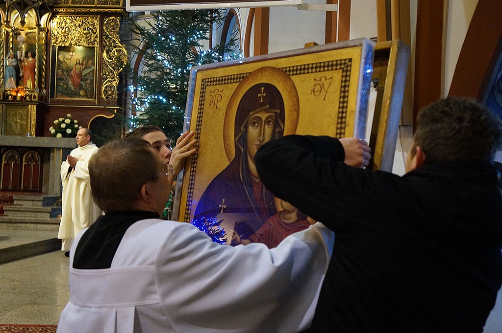 Ikona Matki Bożej z Krzyżem Młodych wędruje od 2003 roku. Oryginał obrazu znajduje się w bazylice Santa Maria Maggiore w Rzymie. Ikona znana jest także pod nazwą Matki Bożej Śnieżnej. Powstanie bazyliki wiąże się z ciekawą legendą. Według niej Najświętsza Maryja Panna ukazała się we śnie papieżowi Liberiuszowi i patrycjuszowi Giovanniemu. Poleciła ,aby w miejscu, gdzie latem spadnie śnieg, stanął kościół Jej poświęcony. W nocy z 4 na 5 sierpnia 352 r. Wzgórze Eskwilińskie pokryła warstwa śniegu.