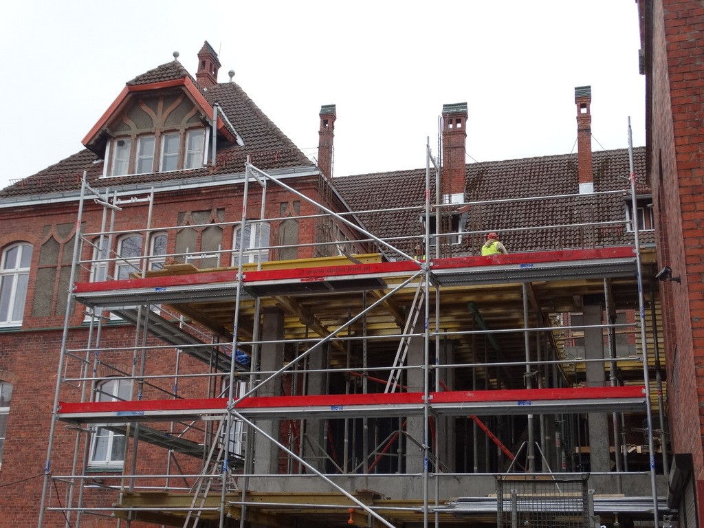 Remont Szkoły Muzycznej w Szczecinku powoli wkracza w kolejną fazę. Lekkie opóźnienie, które miało miejsce na przełomie roku, nie wpłynęło bynajmniej na obecne tempo prac. Mniej więcej za dwa tygodnie będzie gotowa cała konstrukcja nowego – szklanego skrzydła szkoły.