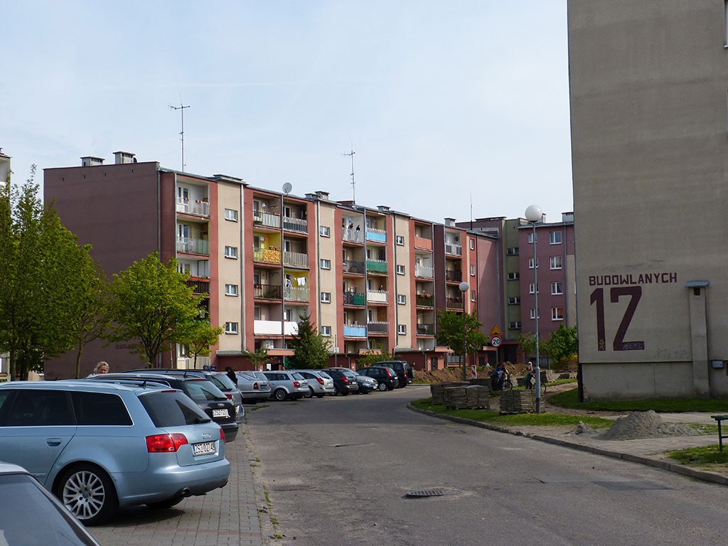 Chodzi o dwa budynki zlokalizowane po lewej stronie wspomnianej jezdni – przy ul. Budowlanych 1 oraz ul. Budowlanych 3. Rzeczywiście w tym miejscu karetka czy wóz strażacki nie mają możliwości podjechania pod żadną z klatek schodowych obu budynków. Byłaby to bez wątpienia najkrótsza trasa, którą służby mogłyby dotrzeć pod wskazany adres. Tymczasem na całej długości po tej stronie ulicy są zaparkowane samochody mieszkańców, brak tu również żadnego wjazdu (w tych miejscach istnieją jedynie dwa wąskie chodniki o szerokości nieco ponad metra), a wzywane w przeszłości do nagłych przypadków pogotowie musiało kluczyć po osiedlu, aby w efekcie podjechać do któregoś z bloków od tyłu.