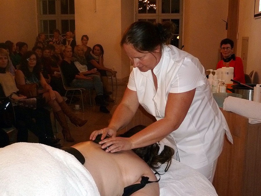 W trakcie spotkania nie zabrakło także „zajęć praktycznych” – szczecinecczanki miały okazję na własne oczy przekonać się, jak wygląda i przebiega masaż m.in. głowy, twarzy czy pleców. Dodajmy, że każda z tych czynności była dokładnie opisywana i wyjaśniana przez panią Beatę, dzięki czemu każda z uczestniczek dokładniej mogła zrozumieć nie tylko technikę, ale również i cel każdego z takich zabiegów. Panie odbyły także krótki „kurs” samodzielnego, prostego masażu, który każda może z powodzeniem wykonać sama w wolnej chwili. Nie zabrakło też wielu przydatnych wskazówek dotyczących stosowania aromaterapii oraz talasoterapii. (mg)
