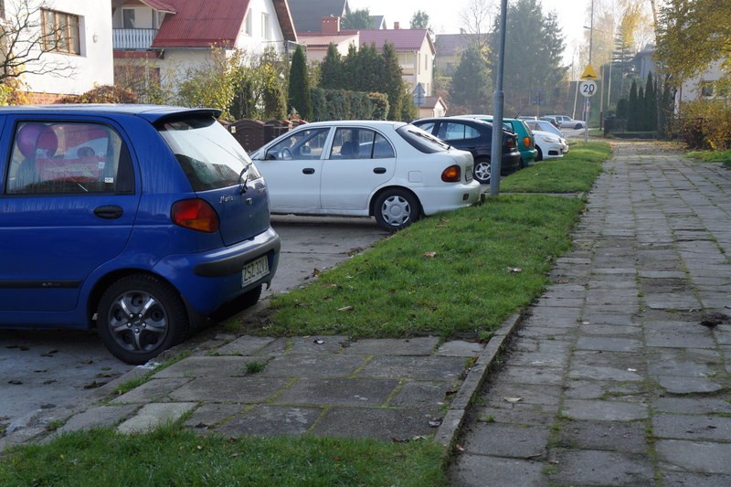 Przechadzając się chodnikiem na dość krótkiej ul. Słonecznej, trzeba uważnie patrzeć pod nogi. Stan nawierzchni ciągu dla pieszych, który przylega znajdującego się w tym miejscu jedynego bloku mieszkalnego, pozostawia bowiem wiele do życzenia. Zamiast równego chodnika, są stare, uszkodzone i wystające płyty. Do tego - niebezpieczne dziury i wyrwy. Dodatkowym problemem jest zbyt mało miejsca na mocno wysłużonym parkingu. Ustawione tam samochody nie mieszczą się, zahaczając o spory kawałek jezdni.