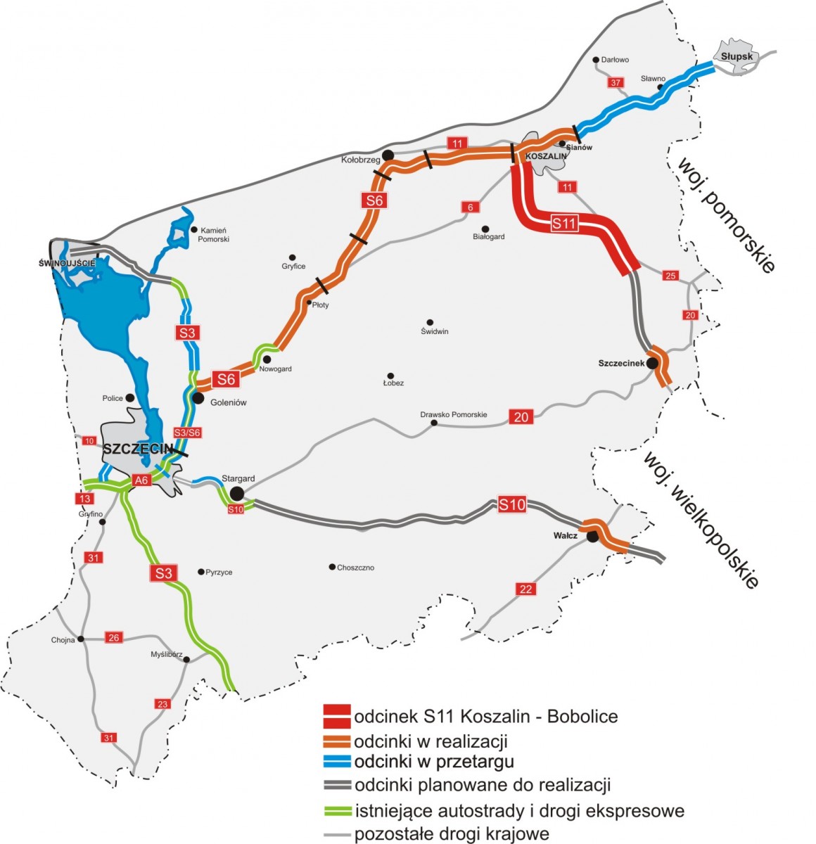 Jak informuje Mateusz Grzeszczuk, Starszy Specjalista ds. Komunikacji Społecznej GDDKiA, ogłoszono postępowanie przetargowe na przygotowanie koncepcji programowej i dokumentacji z zakresu rozpoznania podłoża dla odcinka drogi ekspresowej S11 Koszalin – Bobolice o długości 47 km. Dokumentacja ta posłuży do przygotowania opisu przedmiotu zamówienia do realizacji w przyszłości tej inwestycji w formule projektuj i buduj. Na tym etapie uszczegóławiane są rozwiązania projektowe w korytarzu określonym w decyzji środowiskowej. Wybrany w przetargu wykonawca będzie miał 15 miesięcy na opracowanie tej dokumentacji.
