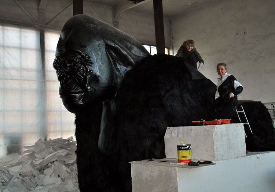 Prace nad gigantyczną rzeźbą, która finalnie osiągnie wysokość 6 metrów, trwały ponad cztery miesiące. W tej chwili trwają już zabiegi wykończeniowe i za kilka godzin rzeźba będzie gotowa, aby opuścić pracownię – ogromną halę, wynajętą specjalnie na potrzeby budowy King Konga. Natomiast jeszcze dziś wieczorem (29.04) rzeźba zostanie przewieziona na stację „Canpol”, złożona w całość i ustawiona przy klatce z tygrysami.