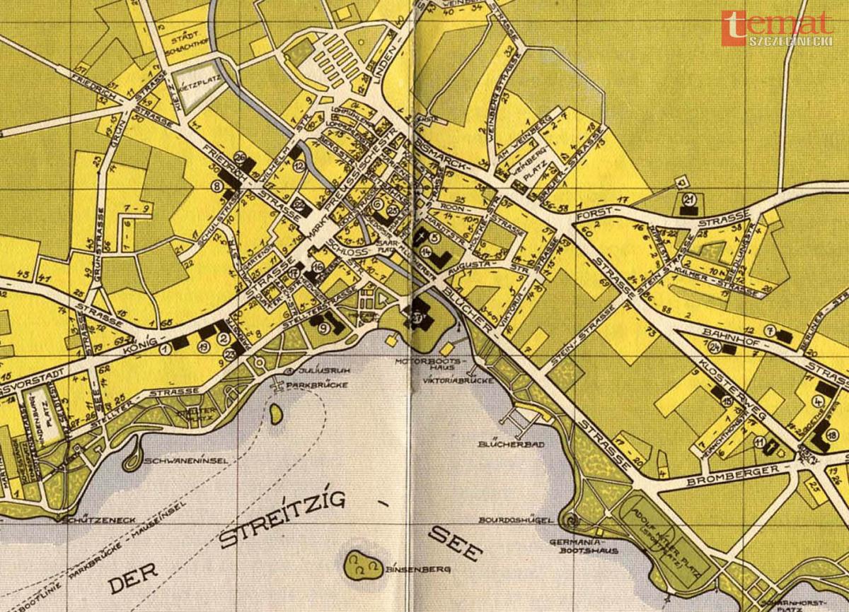 Przenieśmy się zatem oczyma wyobraźni do miasta rozłożonego na trzystumetrowej szerokości przesmyku, między jeziorami Wielimie i Trzesiecko. W tamtych odległych czasach mówiło się nawet, że Nigen Stietin leży nad jeziorem Wielimie, bo jego brzeg sięgał dzisiejszej ul. Jana Pawła II. a od południa wody Trzesiecka zaczynały się na wysokości ul. Ordona.