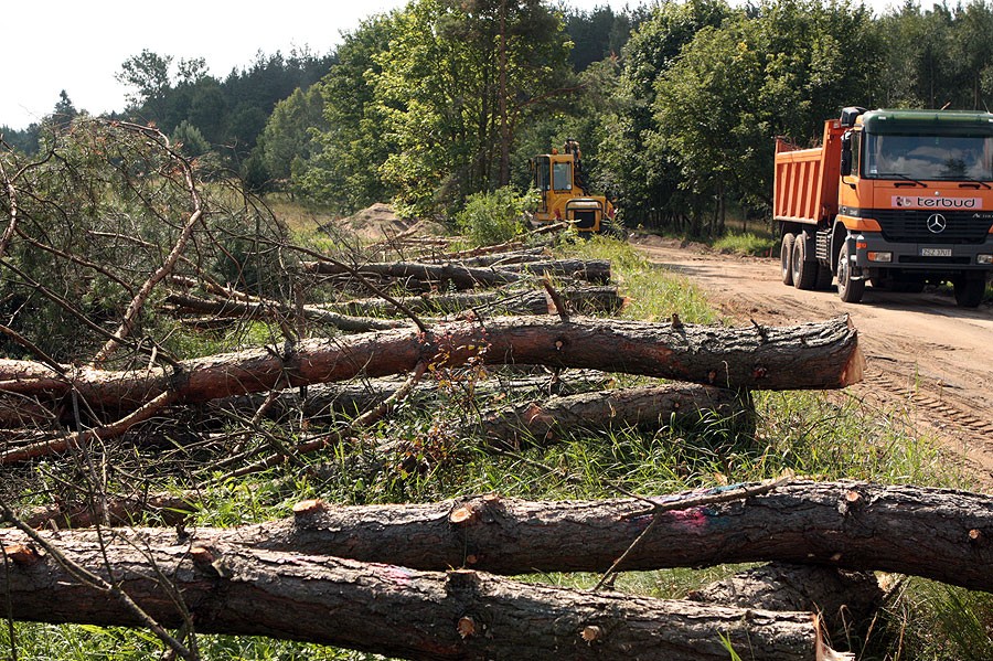 Sprawdziliśmy na miejscu. Wzdłuż pobocza drogi leży kilkanaście drzew. Na całym odcinku pomiędzy skrzyżowanie Żeglarskiej z Brzegową aż do granic lasu trwają prace związane z z jej przebudową. Nowa droga ma być nieco szersza, ale o nawierzchni „nieulepszonej” (po prostu droga gruntowa) z jezdnią o szerokości 4,5 m. Droga w stosunku do istniejącej ma być nieco szersza.