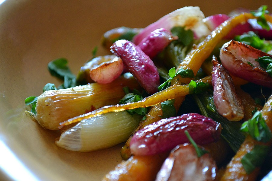 Co roku wyczekujemy ich z niecierpliwością, są bowiem oznaką wiosny. A jeśli wiosna – to przede wszystkim słońce, ciepło, zieleń dookoła. A po wiośnie lato. Dlatego tak je lubimy – nowalijki. Na rynku królują już od ponad miesiąca i cieszą oko barwami i miniaturowym wzrostem, a podniebienie łagodnym smakiem i soczystością. Młode marchewki, małe rzodkiewki, cieniutkie pory. Te pierwsze zazwyczaj nie trafiają na talerz, lecz są chrupane od razu – czasami nawet bez płukania. Rzodkiewki? Przeważnie lądują wraz ze szczypiorem w twarożku z kwaśną śmietaną, doprawione suto solą i pieprzem. A pory wrzucamy do wiosenno-letnich zup jarzynowych, np. kalafiorowej. I słusznie. Ale można też nieco inaczej. Można nowalijki uczynić czymś więcej, aniżeli tylko szybką przekąską lub dodatkiem wzbogacającym smak innych potraw. Można z nich upichcić potrawę w sposób, który pozwoli maksymalnie wydobyć ich słodycz i skoncentrować ich naturalny smak. Upieczmy je. Pieczenie warzyw sprawia, że tracą wodę. Ta z kolei w połączeniu z tłuszczem (roślinnym lub zwierzęcym lub mieszanką), który dodajemy do warzyw, ulega karmelizacji – stąd niezwykła słodycz i wyrazisty smak. Tak przygotowane warzywa stanowią wspaniały posiłek sam w sobie – wystarczy dodać kawałki słonej fety lub gorgonzoli i mamy pyszną sałatkę, która w towarzystwie opieczonych kawałków bagietki stanowi lekką kolację. Pieczone nowalijki wspaniale pasują też do wszelkiego rodzaju przygotowanego na grillu mięsiwa lub pieczonych ryb, np. piersi z kurczaka, polędwicy wołowej, łososia, dorsza. A jeżeli upieczecie znacznie więcej, niż Wam potrzeba do jednego posiłku – na drugi dzień wykorzystajcie warzywa do zupy. Wystarczy zagotować bulion (warzywny lub na mięsie), wrzucić pieczone nowalijki, zagotować i zmiksować na krem. Dodajcie jeszcze pełną łyżkę kwaśnej śmietany na porcję – i kolejny posiłek z głowy.