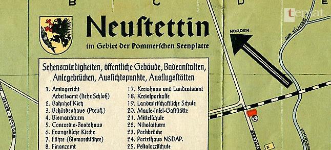 Tymczasem, herb, a właściwie kartusz z herbem o kształcie zbliżonym do wersji sporządzonej przez niemieckiego heraldyka, możemy zobaczyć w… Gdańsku w hali dworca głównego. Dlaczego aż tam? Ponieważ do 1945 roku stacja w Szczecinku podlegała dyrekcji kolei w Gdańsku. Z tego też powodu na tamtejszym dworcu umieszczono herby ośmiu miast, w których znajdowały się stacje węzłowe gdańskiej dyrekcji. Pośród nich była również stacja Szczecinek. Stacją węzłową określa się taki rodzaj stacji kolejowej, z której wybiegają co najmniej trzy szlaki w trzech kierunkach.