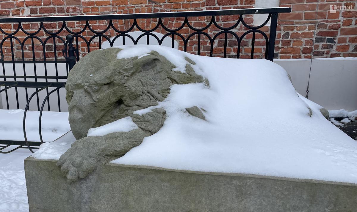 Od kilku lat przed schodami południowego skrzydła zamkowego można zobaczyć wykonaną w piaskowcu rzeźbę leżącego gryfa. To efekt pleneru rzeźbiarskiego zorganizowanego dla studentów jednej z akademii sztuk pięknych. Tak do końca nie wiadomo, czy legendarny stwór drzemie, czy też spoczął tylko na chwilę. Biorąc pod uwagę całość tej historii, jego twórca w ten nieco uszczypliwy sposób nawiązuje chyba do sennej atmosfery powiatowej metropolii i bylejakości.