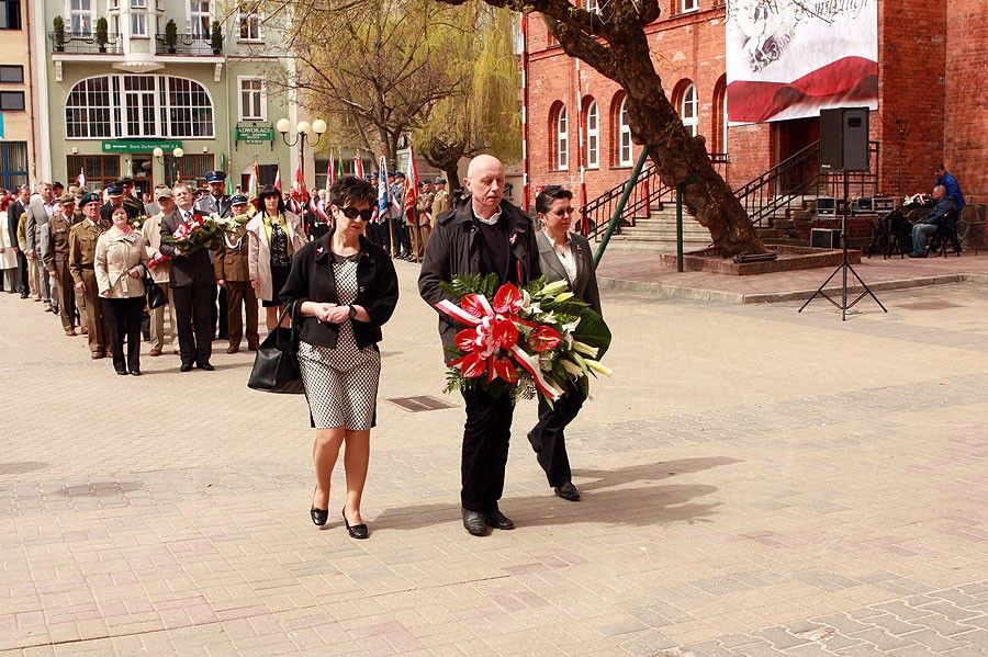 Dzisiejszego dnia kościół wypełnił się niemal do ostatniego miejsca. Tradycyjnie w prezbiterium oraz boczną nawę wypełniły poczty sztandarowe miejscowych stowarzyszeń, kombatantów, harcerzy, szkół i instytucji. Po Mszy św. przy dźwięku werbli uczestnicy udali się na plac Wolności. Tutaj uroczystość rozpoczęła się od odegrania Mazurka Dąbrowskiego. Po krótkim wystąpieniu posła PO Wiesława Suchowiejko, pod tablicą upamiętniającą organizatorów pamiętnej, trzeciomajowej manifestacji, złożono wiązanki kwiatów.