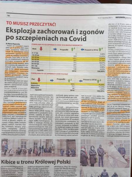 Jaki ten naród Polski durny.Telewizjia TVP to już wszystkim te mózgi wyprała z tymi maskami,dystansem,szczepieniami ludzie czy wy już na prawdę nie myślicie sami.Jestem ciekawa czy Ci namawiacze do szczepień,do noszenia maseczek też będą później tak pięknie i prze konywująco ludzią zwracać zdrowie i wypłacać odszkodowania za jego utratę.A i jeszcze proźba do tych co mają kredyty do spłaty.Zanim się zaszczepice to naj pierw spłaćcie swoje kredyty aby później wasze dzieci albo wnuki nie musiały je spłacać.