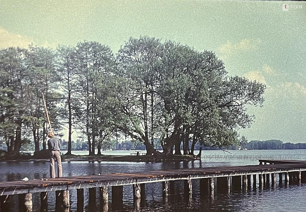 W późniejszych latach, kiedy po knajpie nie było już śladu miejsce to cieszyło się powodzeniem głównie pośród wędkarzy, a także amatorów różnego rodzaju trunków. Oto Łabędzia Wyspa widziana od strony przystani leśników na kolorowym slajdzie z 1978 roku.