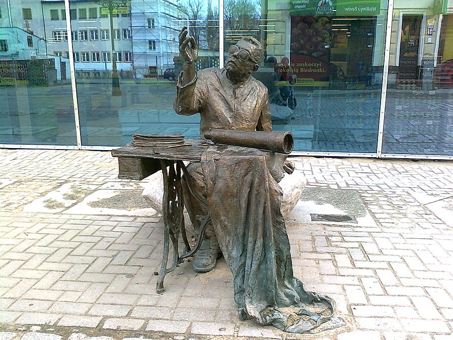 Moim zdaniem Pan Adam powinien zostać na swoim miejscu pomimo stwarzania kolizji dla pieszych. Dlatego że , miejsca jest wystarczająco i dla rzeźby i dla pieszych , ale najważniejsze to o to chodzi żeby ,,wpaść" / mam na myśli turystów / na rzeźbę , zainteresować się i dowiedzieć ,, kto i co " a nie ukrywać znakomitość naszego grodu. Gorszą przeszkodą są nasze piękne ławeczki na deptaku ale nie koniecznie z ,,pięknymi zmęczonymi panami ".
