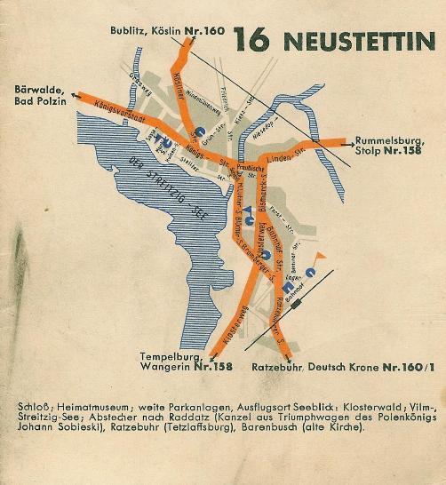 Do końca lat trzydziestych w Neustettin funkcjonowały cztery pompy, czyli stacje benzynowe. Część pełniła także rolę warsztatów – to była wówczas powszechna praktyka. W muzeum przechowywana jest też mapa samochodowa z zaznaczonymi stacjami, pochodząca sprzed 1939 roku.